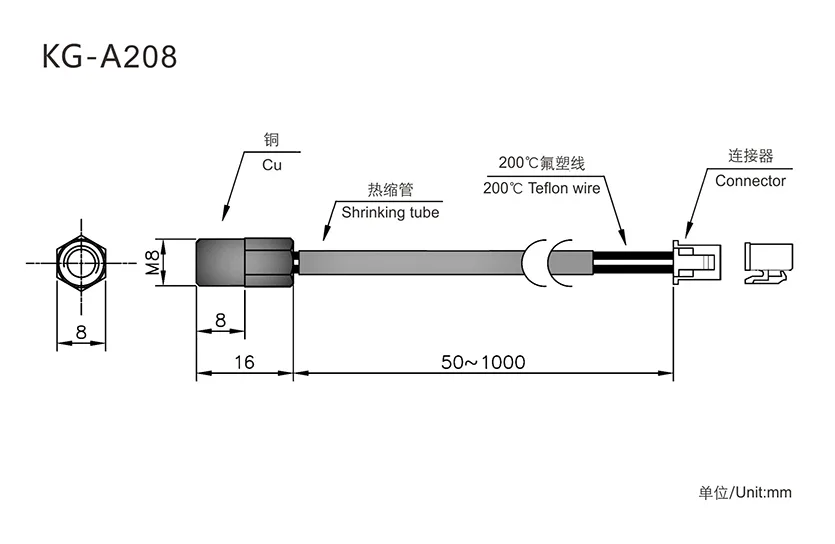 Standard NTC (Customizable):R25℃=100KΩ±1% B25/50=3950K±1%