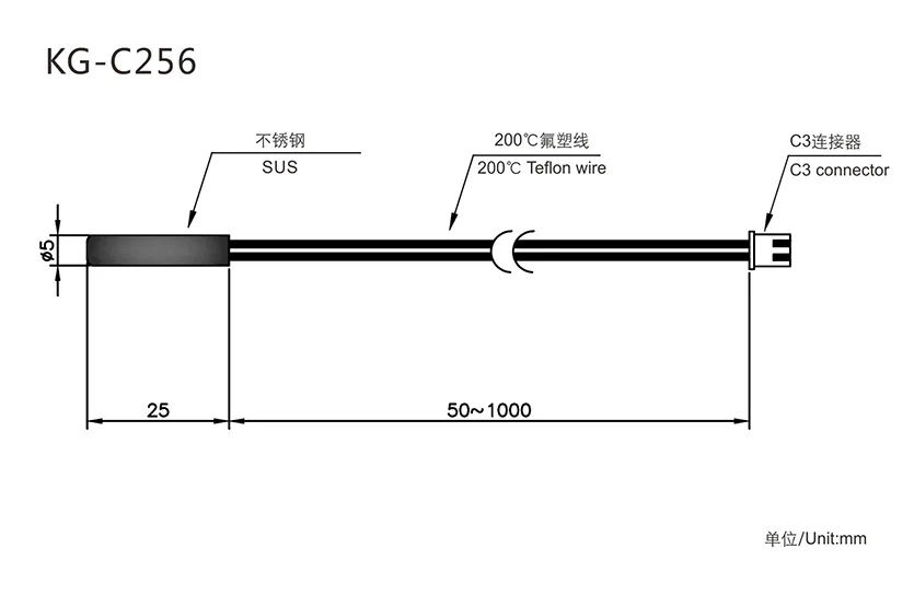 Standard NTC (Customizable):R25℃=50KΩ±1% B25/50=3950K±1%