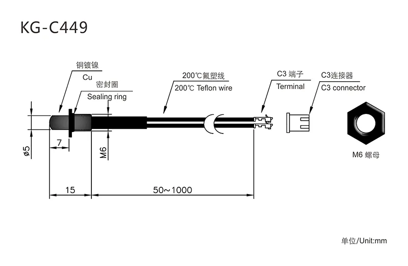 Standard NTC (Customizable):R25℃=100KΩ±1% B25/50=3950K±1%