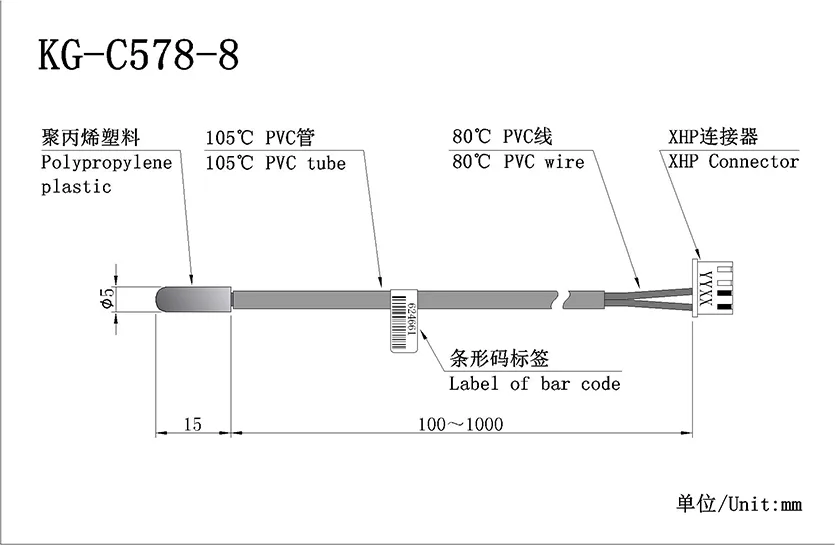 Standard NTC (Customizable):R25℃=15KΩ±3% B25/75=3965±1.39%