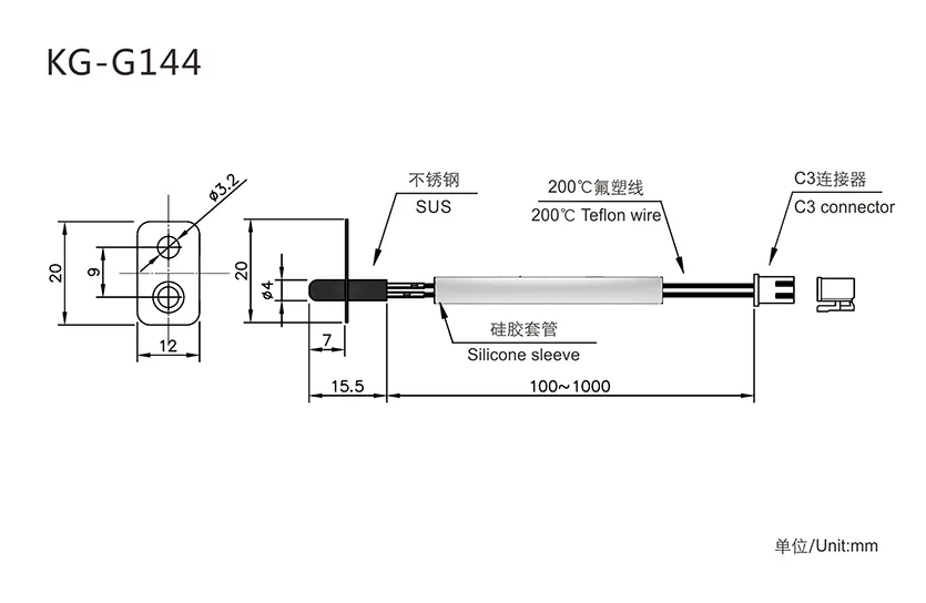 Standard NTC (Customizable):R25℃=100KΩ±1% B25/50=3950K±1%