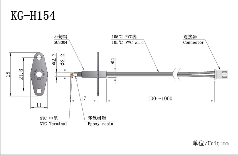 Standard NTC (Customizable):R25℃=10KΩ±1% B25/85=3435K±1%