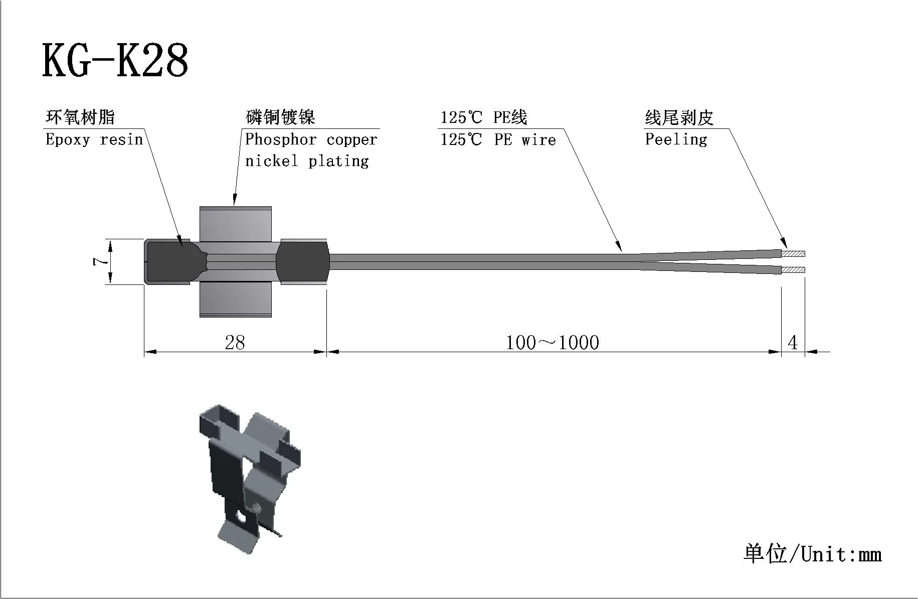 Standard resistance: R25 °C = 10KΩ ± 1% B25 / 85 = 3435K ± 1% (according to customer requirements)