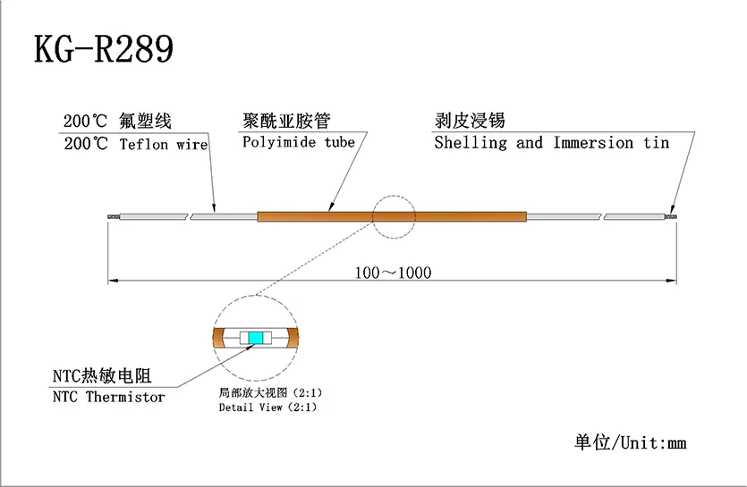 标准电阻:R25℃=100K±1% B25/50=3950(可按客户要求)