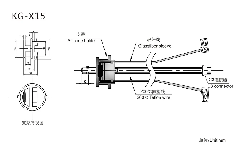 Standard NTC (Customizable):R25℃=100KΩ±2% B25/50=3990K±1%