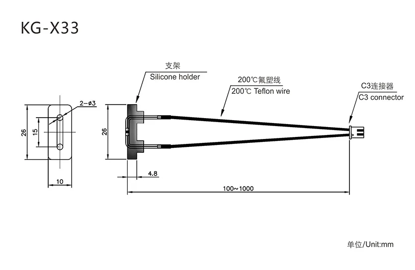 Standard NTC (Customizable):R25℃=100KΩ±1% B25/50=3950K±1%