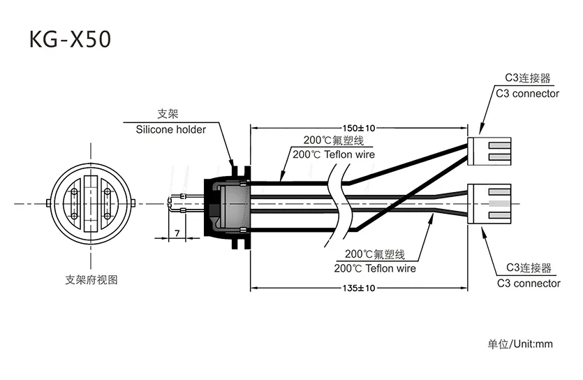 Standard NTC (Customizable): R25℃=100KΩ±2% B25/50=3990K±1