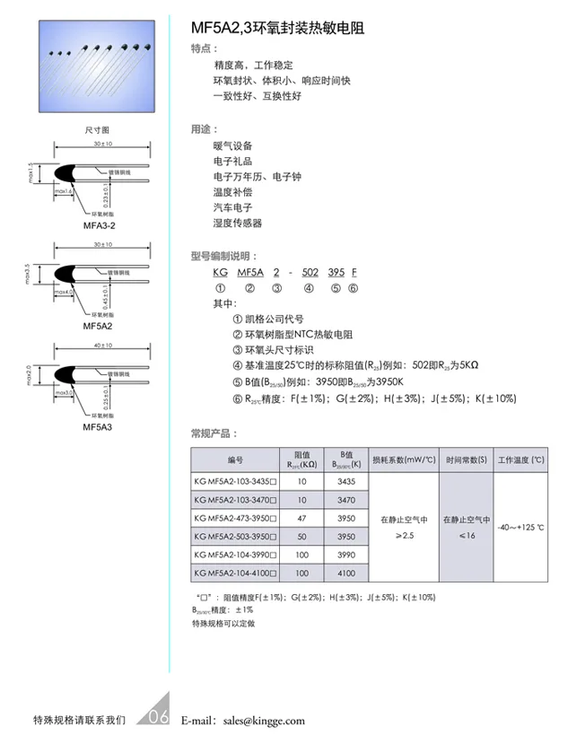 环氧封装NTC热敏电阻MF5A2,3