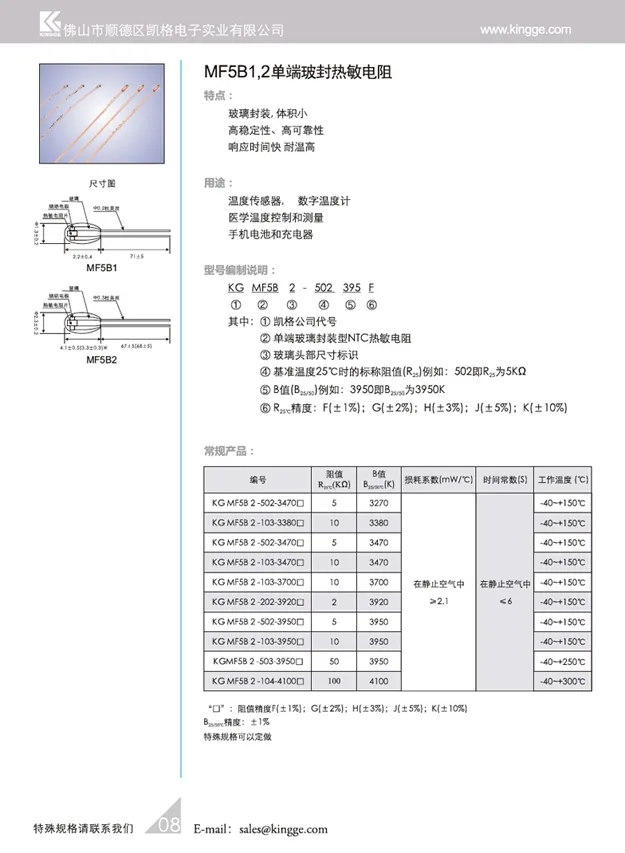 单端玻封型NTC热敏电阻MF5B1,2